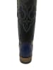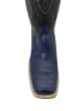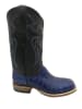 Blue belly alligator vamp with blue leather top. Height 13", Q square toe and 1 ¾" walking heel. Made by Cowtown Boots in El Paso Texas. Every boot is handmade with over 200 individual to complete each pair. Cowtown owns the largest alligator farm in the world and sells to hundreds of other boot and shoe manufacturers. The balance of the boot is all leather, soles, insoles and leather lined. A quality boot at factory direct savings. These boots are made to order and production is about 30 days
